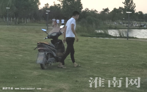 夏日炎炎,西湖春天小區(qū)西側(cè)的小公園成為人們納涼休閑的好去處。不過也有市民的不文明行為特別醒目(如圖),該男子把電動(dòng)車停在草坪中間,帶著寵物狗在草坪上玩耍。(記者)