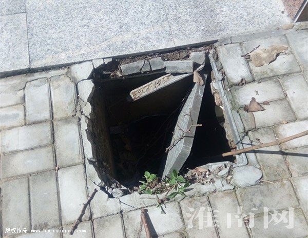 8月23日下午,淮河早報、淮南網記者在大通區民主路北段東邊人行道上看到,約百余米長的人行道上,有3個窨井蓋破碎,而且“虎口”大張的窨井沒有采取防護措施,給經過此地的行人留下安全隱患。(記者)