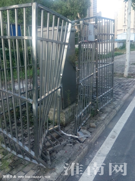 日前,淮河早報、淮南網記者在林場路東段北邊的人行道上看到,一標有“高壓危險,禁止攀爬”警示牌的高壓電箱的不銹鋼護欄遭到嚴重破壞,疑是受到車輛的重創,裂出一個大口子。該高壓電箱附近就有居民小區,萬一有頑皮的孩童從破損的洞口進入,后果不堪設想。(記者)