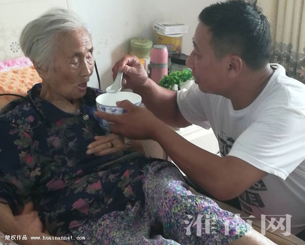 天有不測風云,平靜的生活在2003年被打破。周茂才的父親也因病住院,兩個姐姐遠嫁,照顧兩位老人的重任就落到了周茂才和妻子肩上。從2003年父親患腦梗癱瘓在床到2010年去世,7年當中,周茂才一有時間便會推著輪椅,帶父親一起溜達,給他洗澡、按摩全身,使其一直到去世也沒有得褥瘡。屋漏偏逢連夜雨,2011年母親因車禍被撞斷胯部,癱瘓在床生活不能自理。同年,在潘北礦上班的妻子被查出胃癌,一家人生活頓時陷入了絕境。“上要照顧老人,下有上初中的孩子,還要帶著妻子看病,但我始終沒有放棄,堅信我們這個家能挺過來。”周茂才帶妻子看病期間,兩個姐姐擔負起照顧母親的重任。皇天不負有心人,妻子經手術和化療后病情穩(wěn)定,一直在家調養(yǎng),周茂才又肩負起照顧母親的責任。“只要我下班在家,就會給母親做可口的飯菜。為了好消化,我就把菜切碎,一口一口地喂她。用熱毛巾一天幾次為其擦拭身子,防止生褥瘡。老人家喜歡外出,我就推著她下樓溜達,每天都會給她講稀奇的事情,逗她開心。”如今,周茂才的母親已經90歲高齡,每天都笑呵呵地生活著,周圍的鄰居親友都說,要不是老人家有一個好兒子,不會這么長壽。即使家里再困難,周茂才始終保持著一顆樂觀的心,從未向單位同事提起過家庭的事,直到他在單位鍛煉身體時被領導發(fā)現,才在追問中說出家里發(fā)生的變故。周茂才孝老愛親、和妻子相濡以沫的事跡感動著周邊的同事,也一度被單位傳為佳話。