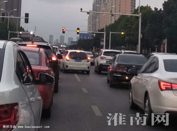 8月31日傍晚時分,正值交通高峰期洞山東路上交通擁堵,吾悅廣場門前更是擁堵不堪,左轉車輛尤其難行。大部分車主都是按秩序排隊通過,卻有少部分車主見縫插針從直行車道斜插入左轉車流,插隊車輛時常占據兩條車道,讓直行車輛也變得難行。圖為一輛私家車在插隊。(記者)