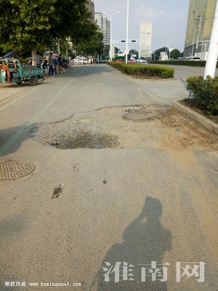 接報后,淮河早報、淮南網記者隨即趕到洞山西路,在泉山十字路口西北角慢車道找到了居民所指的破損路面。淮河早報、淮南網記者看到,這段路面位于一家超市停車場門前,路面確實坑坑洼洼,破損嚴重。停車場的保安告訴淮河早報、淮南網記者,因為這段路面是車輛進出超市的唯一出口,所以來往車輛較多,長期碾軋造成路面破損。在這段慢車道的西邊,還有一處被挖開的大坑,居民稱是維修管道造成的,希望有關部門盡快修復。(記者 柏雪 編輯 湯寧)