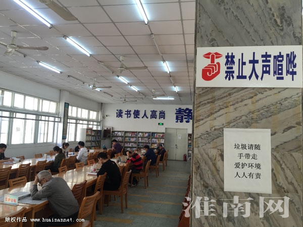 10月10日,淮河早報(bào)、淮南網(wǎng)記者來到市圖書館。在二樓的報(bào)刊閱覽室,入門處就貼有一個(gè)醒目的提示:一個(gè)“噓”的手勢(shì)圖和“請(qǐng)勿大聲喧嘩”的大字。走進(jìn)閱覽室,迎面就是一個(gè)大號(hào)的“靜”字。在閱覽室的門上,貼有“保持安靜”的標(biāo)語,柱子上貼著“禁止大聲喧嘩”,連桌子上也放著“請(qǐng)勿大聲喧嘩”的牌子。閱覽室里有四五十人在各自看著書籍雜志,比較安靜。閱覽室也有使用手機(jī)的讀者,他們都不約而同地帶著耳機(jī),但仍有個(gè)別讀者即使帶著耳機(jī),坐在旁邊還是能清楚地聽到從耳機(jī)里傳出的聲音。