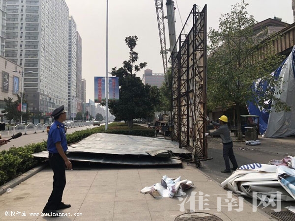 近日,田家庵區城管行政執法局對龍湖路大型戶外廣告開展了集中拆除行動,全力打造城市管理示范路。
