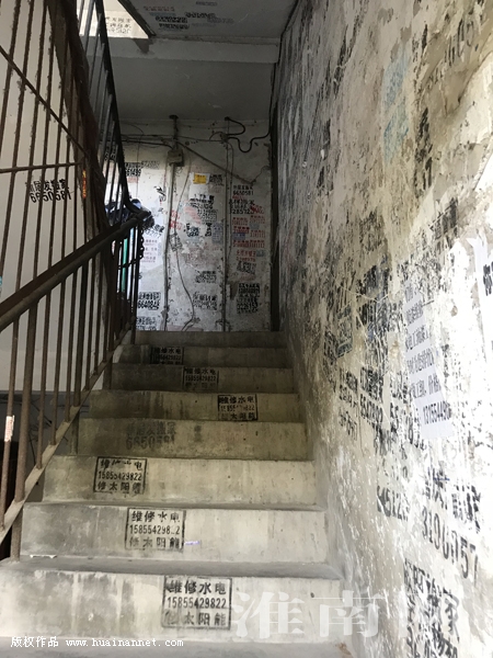 圖二:鐵路新村小區樓梯被貼的小廣告