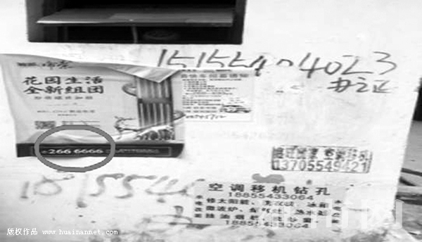 經(jīng)查,3645585、18715681127、2666666、13721130743電話機主,在田家庵區(qū)實施非法張貼小廣告行為,擾亂了市民正常生活,破壞了公共環(huán)境秩序,影響了城市文明形象,嚴重損害了我市創(chuàng)建全國文明城市工作,性質十分惡劣,情節(jié)特別嚴重,社會影響極壞。現(xiàn)予以曝光,決定責令違法行為人立即清除張貼、涂寫的小廣告,暫停其通訊號碼使用30日,待停機期滿且非法行為糾正和處理后,恢復其通訊號碼的使用。