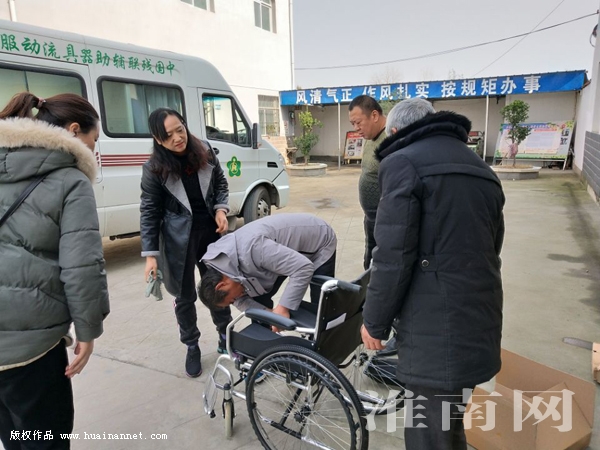 11月22日上午,市殘聯工作人員來到壽縣隱賢鎮姚祠村,在村部現場安裝調試一輛嶄新的輪椅,送給貧困戶陳士林的殘疾妻子洪祖娟用。洪祖娟患小兒麻痹癥,雙下肢殘疾,不能正常行走。為了幫助其解決出行困難,增強生活自理能力,報社駐村扶貧工作隊積極聯系市殘聯為其申請了一輛輪椅。