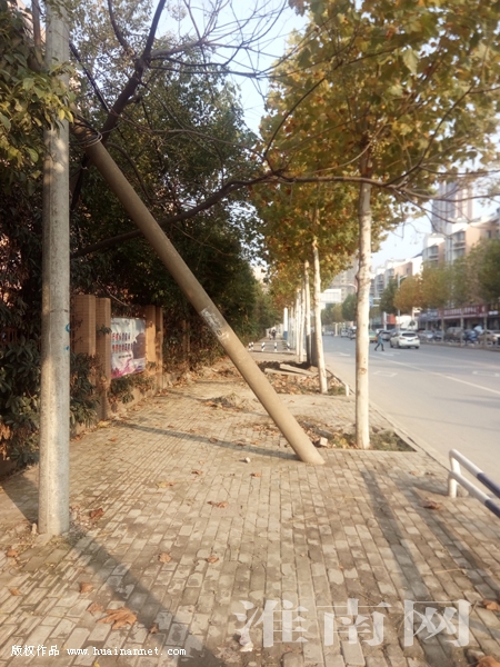 11月27日下午,淮河早報(bào)、淮南網(wǎng)記者在林場(chǎng)路陽(yáng)光國(guó)際城段看到一根廢棄的水泥電線桿橫斜在該路段北面人行道上,既有礙行人正常通行,也存在一定安全隱患。(記者)