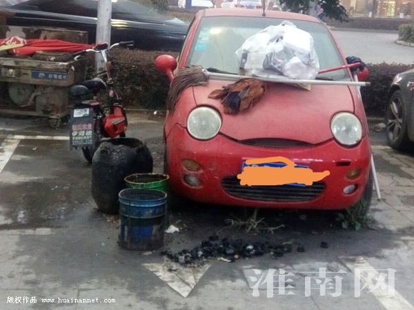 市民蘇先生向淮河早報、淮南網熱線反映,在惠利路東邊的人行道上,有一處公共停車場。一輛破舊的小轎車長期停在公共停車位上,附近一家商鋪的經營者將一些垃圾桶擺放在該車的周圍,并在車頂上堆積雜物,被該車霸占的停車位也經常污水橫流。 (記者)