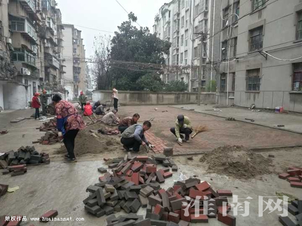 圖一:在無物管的居民區(qū)內(nèi),工人們正在加緊修建休閑活動(dòng)廣場。