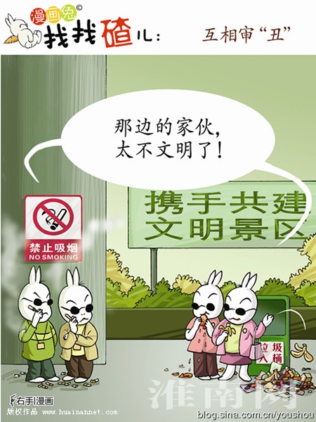 不難發(fā)現(xiàn),“自殺兔”之所以受到網(wǎng)友青睞,除了令人捧腹的黑色幽默外,最主要是作者針砭時弊的意圖。在輕松隨意、富有童趣的畫面背后,是一個個嚴肅的社會問題,這無疑是很高明的表現(xiàn)手法,有人將他比作“漫畫界的郭德剛”。