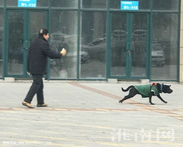近日,有市民反映在中化國際城小區門前的小廣場,有一位老人在訓練狗,市民覺得有安全隱患。1月4日上午,淮河早報、淮南網記者途經此處看到,確如市民所說,一位身著黑色棉襖的老人,手里拿著一件東西,他先讓狗聞了聞,然后扔出去,狗快速地把東西找到并咬住交給老人手中。在訓練過程中,有帶著孩子路過的市民都會繞路而行。(記者)