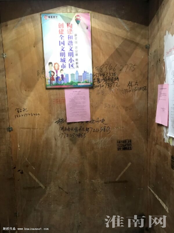 近日,家住廣弘城的市民反映,他們所住小區的電梯間竟被各種手寫的小廣告占滿,直到現在,這些牛皮癬也沒有清除。隨后淮河早報、淮南網記者走訪了該小區一些樓棟,發現電梯內確實有不少小廣告,和一旁的創建文明城市宣傳標語對比,顯得格格不入。(記者)