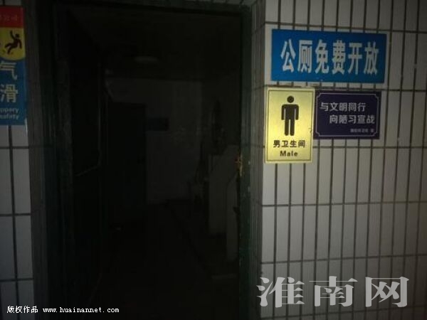 淮河大道立交橋下的一處免費(fèi)公共廁所內(nèi),由于安裝的照明燈不亮(如圖),給天黑如廁的市民帶來(lái)不便,希望相關(guān)部門能及時(shí)修復(fù)。(記者)