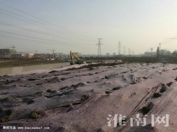 1月21日下午,淮河早報、淮南網記者在現場看到,一輛挖掘機正在對堆積渣土進行平整,原來幾處堆積較高的渣土有的已經夷為平地,幾名工人正用土工布對裸露渣土重新覆蓋。據施工單位安徽水利股份開發有限公司現場施工負責人劉傳昌介紹,該工地為排洪溝工程的一部分,有兩三百米長,目前主體工程已經完工,只剩下兩側堤頂路和綠化還未施工。針對施工現場存在渣土堆積裸露問題,劉傳昌解釋,之前也對渣土覆蓋了綠網,由于施工需要,就邊覆蓋邊施工,之前覆蓋的一些綠網經過風吹日曬雨淋退化了,就出現了渣土裸露的情況,而一些渣土也確實沒有完全覆蓋到位。劉傳昌表示,從見報當天上午就開始組織人員和機械對問題進行整改,將對該處工地兩千平方米的渣土逐一覆蓋,按照要求,做到全覆蓋。