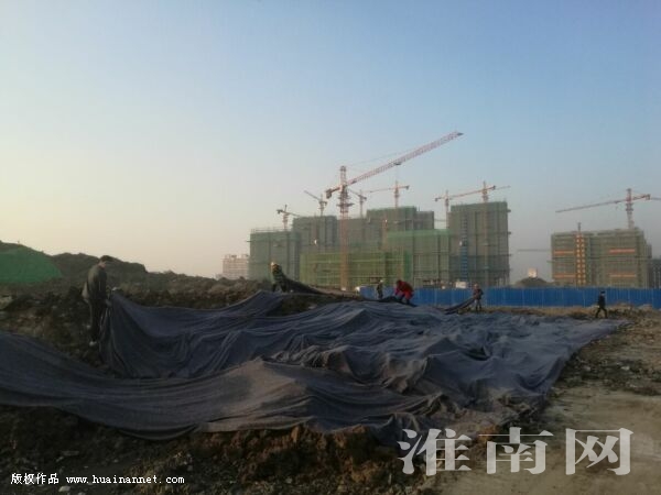 1月23日,報道見報當天上午,淮南經開區相關部門就已聯系、督促施工單位及時整改。當天下午4時30分左右,淮河早報、淮南網記者在現場看到,在靠近鐵路一側的渣土堆已被綠網遮擋覆蓋;在臨近建筑工地一側的渣土堆上,幾名工人正展開土工布將渣土逐一覆蓋;兩輛挖掘機也在現場不停作業,路邊污水中的白色垃圾和雜物也已經被清理。